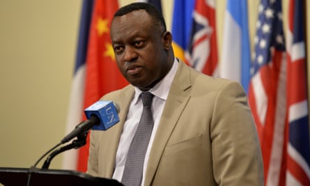Gasana, then Rwanda’s ambassador to the UN, speaking to the media at the UN headquarters in New York in 2014. Photograph: Stan Honda/AFP/Getty Images